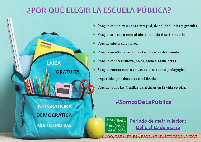 La Plataforma está formada por CCOO, FAPA, AUR, IU, PSOE, STAR, STE-RIOJA y UGT.
