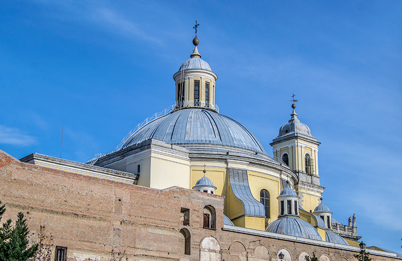 Aunque aún falta un campanario del que hablar, la Basílica madrileña de San Francisco (de Asís) el Grande se cuela en la lista no por una torre, pues tiene dos de menor altura, sino por su cúpula coronada por la correspondiente cruz, y que se eleva hasta los 73 metros. Más que por este dato que la coloca entre las cruces más altas de nuestro país, su peculiaridad está en la propia cúpula, que con 33 metros de diámetro es la tercera más grande del mundo, solo por detrás de la del Panteón de Roma (arquitectónicamente «falsa» o imperfecta, ya que no se sustenta gracias a arcos, sino a que tiene una abertura -óculo- en el centro y disminuye de grosor con la altura) y la de San Pedro del Vaticano.