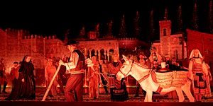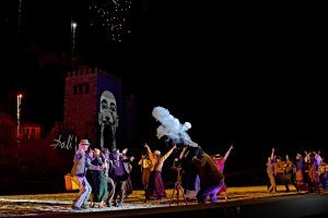 Terminamos la visita al parque temático Puy du Fou, cercano a Toledo, con su plato más fuerte: el espectáculo El Sueño de Toledo resume en hora y veinte minutos 1.500 años de Historia de España, tratando de inculcar sobre todo el valor de la convivencia, que la ha hecho grande. Reúne así todos los recursos educativos posibles, pero su horario –de miércoles a domingo a las 22 horas en mayo, agosto y septiembre; a las 22:30 en junio y julio; 21:30 en marzo, abril, octubre y noviembre– nos invita a disfrutarlo en familia y por eso también tiene entrada aparte de la visita diurna al parque.