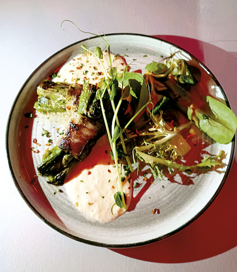 - The Rooftop, restaurante bistronómico, skybar, terraza y veladas lounge. Bd. de Verdun, 86000. En la imagen superior, sala interior del restaurante y uno de sus platos de temporada: espárragos crujientes, tocino y crema de chalota con pimiento de Espelette.