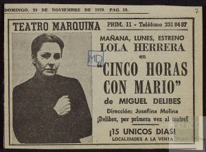 - Cinco horas con Mario (Miguel Delibes). Una mujer tradicional critica la modernidad velando a su esposo. M.A. Garrido en Nueva Revista.
