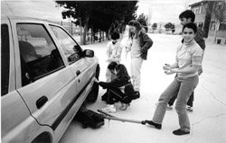 —Taller de automoción: con este taller se intentó desmontar y sustituir una rueda. Las alumnas recibieron las instrucciones pertinentes para la sustitución de una rueda, siguiendo los criterios de seguridad vial lógicos de la tarea. Durante la realización de dicha tarea, las niñas manifestaban lo difícil que era e incluso preferían no intervenir en esta actividad, pero, una vez que concluyeron la sustitución las dos primeras niñas, las demás se agolpaban para repetir la actividad con gran entusiasmo y con comentarios como que “no era tan difícil”. La deducción que sacaron es que para cambiar una rueda no es necesaria la fuerza, sino saber qué herramientas son necesarias y cómo utilizarlas.