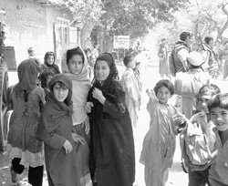 Aunque se ven niñas escolarizadas en Primaria en las zonas controladas, son más difíciles de ver en las zonas controladas por los señores de la droga o con una fuerte implantación talibán en el pasado reciente. “De todas formas, en casi todos los sitios les ponen el burka a los doce años, y es raro ver a mujeres adultas sin él incluso en Kabul”. Situación aún más triste si consideramos que Afganistán permitió el sufragio femenino en 1923, diez años antes que en España.