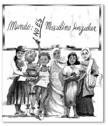 “Los hombres pueden lavar los platos. Las mujeres pueden conducir”; “Todos somos iguales. Todos tenemos los mismos derechos” o “¿Qué haríamos sin ellas?” son algunas de las frases –subrayadas por dibujos que expresan gráficamente la igualdad de sexos– ideadas por estos estudiantes de Secundaria para Mundo NO ES masculino singular.