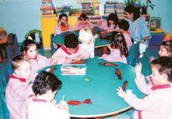 Es importante que los niños conozcan la importancia de clasificar las basuras y el impacto medioambiental que puede suponer el no hacerlo. Por ello, otra de las actividades que organizamos fue la del reciclaje, con objeto de despertar el interés de los pequeños por los problemas que se producen en su entorno. Decidimos ponernos manos a la obra e imaginamos que nuestra clase era una fábrica de papel de reciclado donde los niños ejercían de trabajadores.