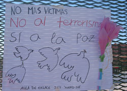 El recuerdo de las víctimas sigue presente en las aulas. Las iniciativas solidarias han sido las protagonistas en estas últimas semanas. Y es que los mensajes e ideas se han puesto al servicio de la paz. Alumnos y profesores han realizado coloquios, mesas redondas y charlas con los psicólogos del centro, pero los escolares han querido dejar plasmada su tristeza e impotencia en algunos carteles.