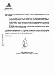 Ruano explica a los centros en este sentido que “ante los próximos cambios en el Gobierno estatal tras las pasadas elecciones generales, es previsible que algunas medidas previstas en el calendario de aplicación de la LOCE para el 2004-05 sean aplazadas por un nuevo Real Decreto hasta que se concrete una anunciada modificación de la propia LOCE. Ello nos obligaría a adaptarnos a un nueva situación legislativa, volviendo a realizar la planificación del próximo curso de acuerdo con el sistema Logse”.