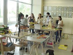 —Taller de diseño y construcción de fuentes y juegos de agua: un pequeño motor de agua, un bote similar a un carrete de fotos, cinta aislante y una hélice son los elementos necesarios para demostrar a los jóvenes visitantes cómo se puede construir una bomba de agua.
