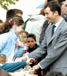 Allí don Felipe y Leticia Ortiz tuvieron un entrañable encuentro con los alumnos, seis de ellos huérfanos después del 11M. Durante hora y media visitaron clases de Educación Infantil y Primaria, mientras conversaban con los pequeños y con varios de sus familiares. A unos y a otros les dedicaron palabras “muy humanas y cariñosas”, según manifestó el director del centro, Modesto Pardo.