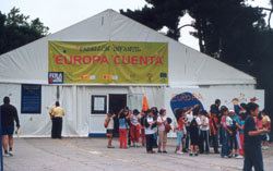 En el espacio escénico de cuentos sin fronteras los narradores ofrecen relatos traídos de toda Europa. Cuentos que hacen que se sientan cercanos a otros niños de otros países con los que comparten emociones.
