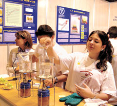 Una idea interesante fue la de conservar los resultados de los experimentos y exponerlos en el mostrador exterior del stand de modo que alumnos monitores pudieran explicar las actividades al público de paso en la feria.