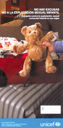 “Si no hay clientes, no hay explotación sexual”, asegura desde Unicef María Jesús Conde. Así, sensibilizar a aquellas personas que viajan desde España a destinos turísticos conocidos por la facilidad que ofrecen para mantener relaciones sexuales con menores de edad, es el objetivo que se ha marcado Unicef a través de su Campaña contra la Explotación Sexual Comercial Infantil en los Viajes. Bajo el lema No hay excusas. No a la explotación sexual infantil, el Comité Español de esta ONG, junto con el Ministerio de Trabajo y Asuntos Sociales y la Secretaría General de Turismo, emprende una acción de sensibilización pública mediante materiales como folletos, carteles, pegatinas y un vídeo.