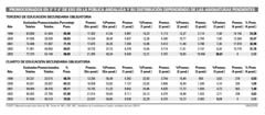 Las pruebas están en las tablas que les ofrecemos. Primero, puede verse cómo el paso de 3º a 4º de la ESO está extremadamente “barato”: naturalmente, esos alumnos pasan sin ninguna posibilidad de obtener el título de Secundaria –ni de enfrentarse a la FP con base suficiente– y abandonan el último curso sin llegar a evaluarse (con lo que se evita que figuren en las estadísticas que sólo incluyen evaluados y promocionados). Por ello descienden casi un 30% los alumnos matriculados en 4º con respecto a 3º de ESO.