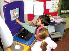 A lo largo de la semana los niños pasan por todos los rincones. En el caso del Pupitre informático, los alumnos acceden por parejas y de forma alternativa tienen el rol de escribir, dictar y realizar las actividades propuestas. La duración de la sesión va desde 35 a 45 minutos. En cada una se lleva un registro de asistencia y se anotan las dificultades, los progresos y las anécdotas. Después, en la asamblea, cada niño verbaliza lo que ha hecho en el taller.