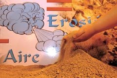 Para ello se han empleado diversos materiales, como arena de mica y pajitas. Con la maqueta, al soplar sobre la cima de la montaña con una pajita, ésta se transformaba en un cerro. Además, se ha comprobado que soplando con la pajita en la falda el aire dibuja cárcavas. Por último, arrastrando arena de un lado a otro de la duna, se ha observado cómo la duna va desplazándose, por lo que se ha concluído que el aire mueve las dunas.