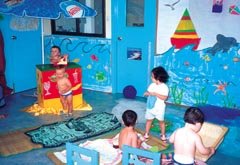 Durante el mes de mayo, en diferentes momentos, seis de los siete niños se marcharon de vacaciones a la playa. A la vuelta seguían entusiasmados con el tema y observamos cómo se interesaban por todo aquello que tuviera relación con el mar, trasladándolo a muchas de sus actividades y a su juego simbólico. Así, fueron envolviendo poco a poco de ambiente marino cada rincón del aula, haciéndolo extensivo incluso a los que no habíamos ido de vacaciones.