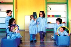 Como actividades de motivación trabajamos el plano del barrio en un mural, colocando los puntos de referencia más significativos (colegio, supermercado, farmacia…) y los niños señalaron sus domicilios y trayectos familiares. Posteriormente, realizaron una salida por dicho barrio, trabajando de esta manera conductas positivas como mirar a ambos lados antes de cruzar, prestar atención a las señales… Una vez nos encontramos dentro del aula, dramatizamos y representamos los distintos pasos para cruzar: encima del bordillo, mirar a un lado y al otro, escuchar a la vez que se mira, cruzar rápido en línea recta y sin correr…