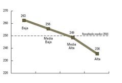 En vez de trabajar con calificaciones absolutas, el estudio del Inecse se centra en determinar las desviaciones respecto al resultado medio (que siempre se establece en 250) según responda el alumno a una u otra opción en cada uno de los parámetros analizados. Es un método similar al de otros informes como el PISA, que en este caso toma “500” como valor medio en sus comparaciones.