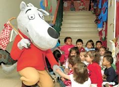 Lucas, el lobo sentimental está acompañando desde el principio de curso a los pequeños alumnos de la EI “Los Ángeles” de Madrid. Este personaje forma parte del proyecto Un mundo de cuentos y se dedica a presentar a los niños diversos cuentos tradicionales europeos. Ahora mismo le está tocando el turno a Pulgarcito, que también se acerca a los niños en inglés. Y es que la EI “Los Ángeles”, junto a las escuelas “Tomillar” (Torrelodones) y “La Cañada” (Coslada), está llevando a cabo un programa de inmersión lingüística en inglés en el segundo ciclo de la etapa de Infantil.
