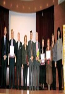 | Paulino Arguijo recogió el premio al trabajador más antiguo. | Débora García, nuestra delegada en Castilla y León, cambia opiniones con Juan Carlos Rodríguez Santillana y Javier Serna. | Carmen Guaita, secretaria de comunicación de ANPE; Augusto Serrano, portavoz de STES, y Nicolás Fernández Guisado, presidente de ANPE. | Isabel Bazo, presidenta de la CECE, recoge el premio de manos de Luis Arranz, decano de la Facultad de Educación de la UCM. |