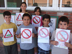 Como punto final a esta experiencia, en la clase de Educación Artística, los niños participaron en un concurso de señales de tráfico en las que tuvieron que dibujar una actitud positiva y otra negativa con respecto al consumo y uso del agua. Bajo cada una de éstas, escribieron en ingles el consejo o la prohibición a la que hacía referencia el dibujo.
