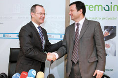 El conselleiro de Cultura, Educación y Ordenación Universitaria, Xesús Vázquez Abad, y el director financiero de la empresa Coremain SLU, Javier Atán Castro, firmaron la pasada semana un convenio de colaboración con el que se inicia el proceso de implantación de la Formación Profesional dual en Galicia.