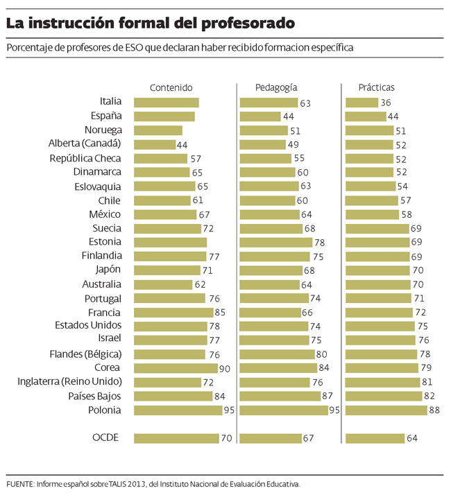 El informe TALIS 2013 sobre la profesión docente realizado por la OCDE y divulgado hace tres meses es una mina de datos para conocer y comprender la idiosincrasia de la profesión docente en nuestro país, asentada en llamativas contradicciones.