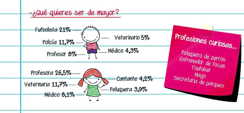 Los chicos entre 4 y 16 años quieren ser futbolistas, las chicas, maestras