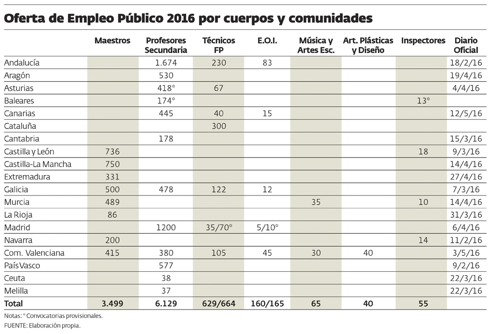 En total han sido admitidas 6.163 personas y 105 han sido excluidas para las convocatoria de la oposiciones al Cuerpo de Maestros en la que ofertan un total de 331 plazas.