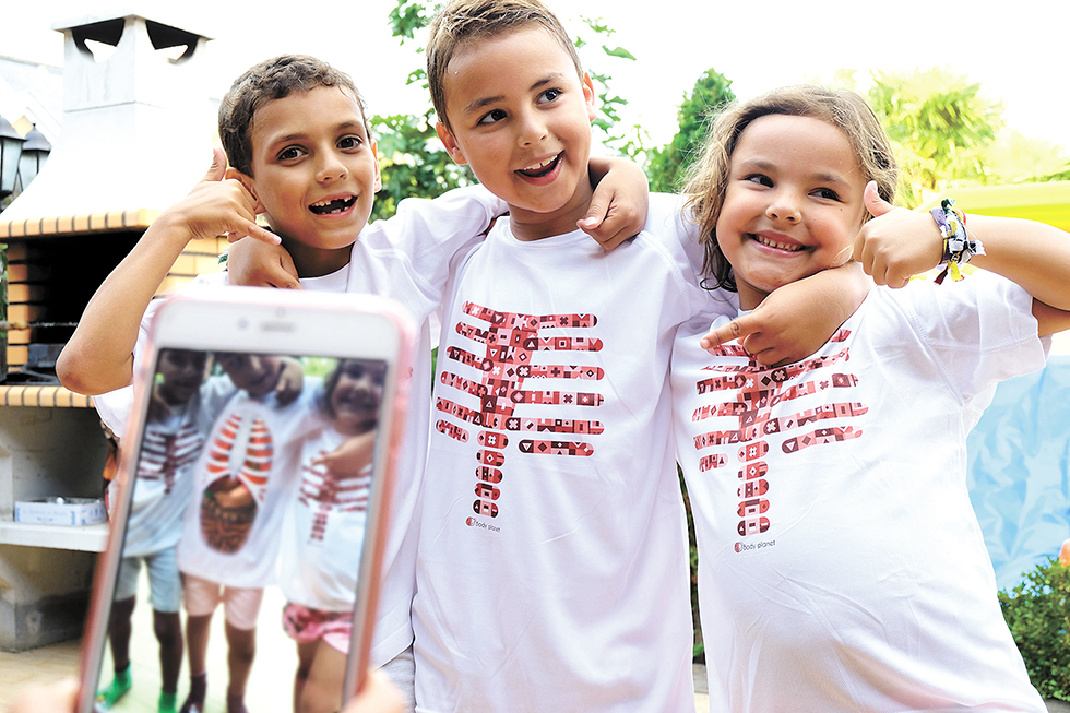 Un alumno se pone la camiseta mientras que otro le apunta con el móvil o tableta. Seguidamente aparece en le dispositivo la imagen que acompaña los movimientos de quien viste la camiseta. El alumno que tiene el dispositivo móvil puede ver a tamaño natural el interior del cuerpo, con los latidos del corazón o la contracción del diafragma, mientras puede cambiar el ángulo de visión o ampliar la imagen al mover o acercar la pantalla.