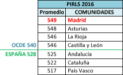 Resultados de la Comunidad de Madrid en PIRLS 2016