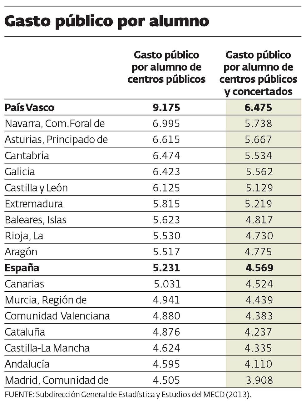 “El éxito de un sistema educativo no depende de la cantidad de recursos, sino de invertir eficazmente, y ese es precisamente el problema del País Vasco”, dice un informe sobre el sistema educativo que ha presentado el PP vasco hace pocos días.