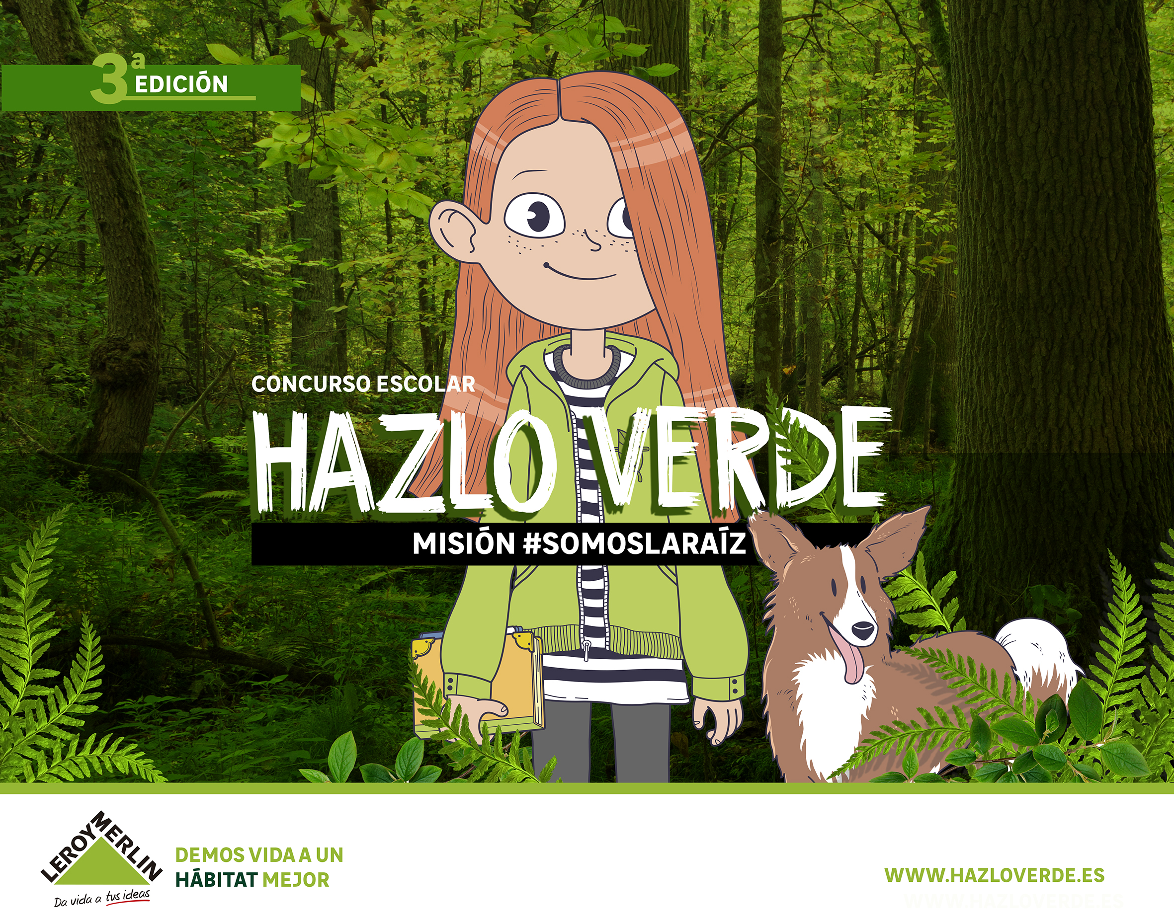 Leroy Merlin ha convocado la III edición del concurso escolar Hazlo Verde, cuyo lema de este año es Somos la Raíz, como continuación del movimiento social creado por profesores y alumnos con el fin de sensibilizar a los escolares de 6 a 12 años sobre hábitos sostenibles convirtiéndoles en ciudadanos responsables con su entorno, potenciando su espíritu emprendedor, convirtiéndoles en agentes de cambio y promoviendo la sostenibilidad mediante su compromiso con los Objetivos de Desarrollo Sostenibles (los “ODS”).