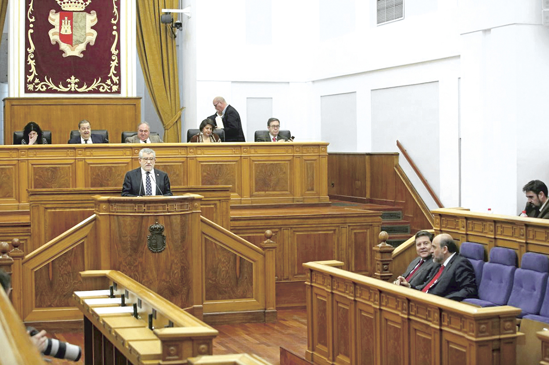 El consejero de Educación, Ángel Felpeto, durante su intervención en las Cortes de Castilla-La Mancha. JCCM
