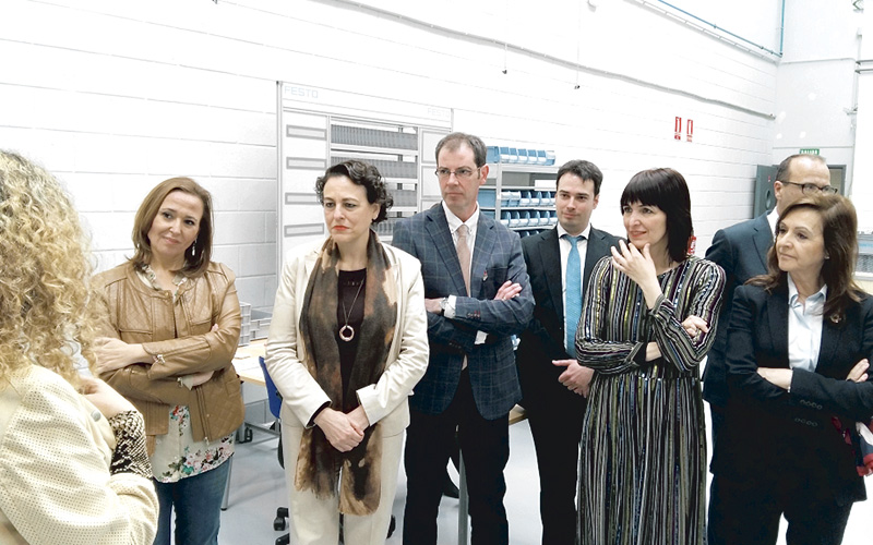 A continuación, la ministra de Trabajo pudo conocer de primera mano el trabajo que desarrolla el Centro de Innovación para la Formación Profesional de Aragón (Cifpa), en cuya sede está instalada la primera fábrica de aprendizaje del país, una instalación réplica de una factoría real del sector de automoción que permite desarrollar todos los aspectos formativos relacionados con el sector. Valerio conoció la labor de formación de los alumnos del IES «Virgen del Pilar» que se encontraban en las instalaciones y departió con ellos acerca de su futuro laboral.