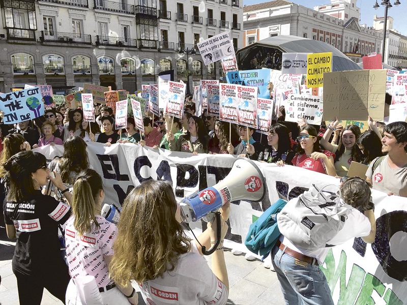 Jóvenes durante la movilización del 15 de marzo en Madrid para luchar por el cambio climático. ENTRECULTURAS