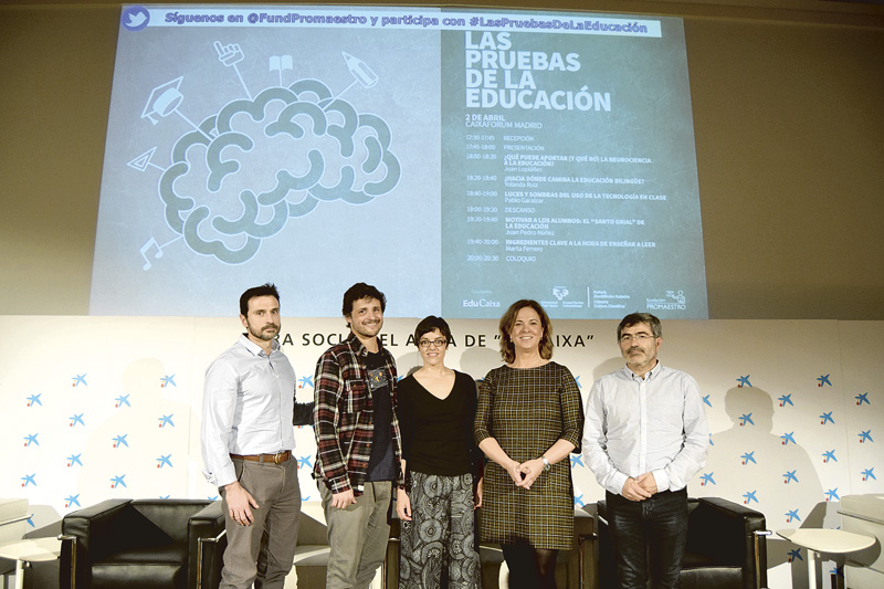 Así pues, Madrid acogió por primera vez, de la mano de la Fundación Promaestro y con la colaboración de EduCaixa, un formato creado y desarrollado por la Cátedra de Cultura Científica de la Universidad del País Vasco. Las pruebas de la Educación estuvo compuesta por ponencias, breves y de carácter divulgativo, en las que se expusieron las pruebas empíricas que se hallan en la base de diferentes afirmaciones, propuestas y prácticas educativas.