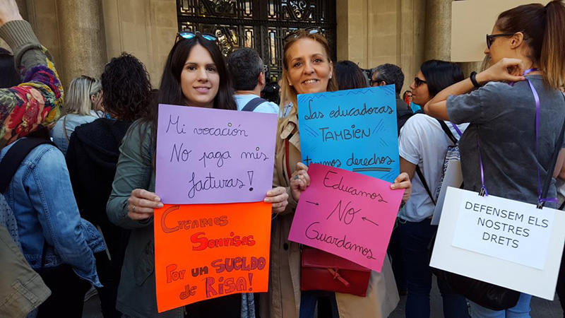 «Nos plantamos, basta ya, necesitamos seriedad en este asunto, dignificar esta profesión, que sea reconocida, respetada y valorada entre el resto de la comunidad educativa», han comentado a Efe María y Ángela, educadoras de un centro del barrio de Vallecas. «Trabajamos en algo que nos gusta, es vocacional, sí, pero no es gratuito. Queremos vivir de ello no tener un segundo empleo para poder sobrevivir al mes pues cobramos menos del salario mínimo interprofesional, de cuya subida nosotras no hemos notado nada», han argumentado.
