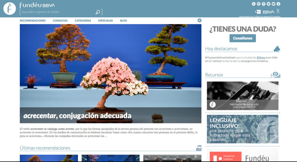 Entre esa veintena de medios e instituciones figura la Fundación del Español Urgente, de la que dicen: «En algún momento tenía que regresar el interés, el respeto y el redescubrimiento apasionado de lo importante que es el uso de la lengua», sobre todo en un momento como este en el que «la escritura invade tantos campos». «Debía ser algo notorio para que en 2005 surgiera la Fundación del Español Urgente», actualmente patrocinada por la Agencia EFE, el BBVA y la agencia de comunicación Prodigioso Volcán y asesorada por la RAE».
