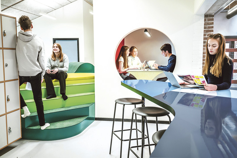 Un paisaje de aprendizaje diferenciado en la Escuela "Buddinge", en Dinamarca (2019), diseñado por Rosan Bosch.