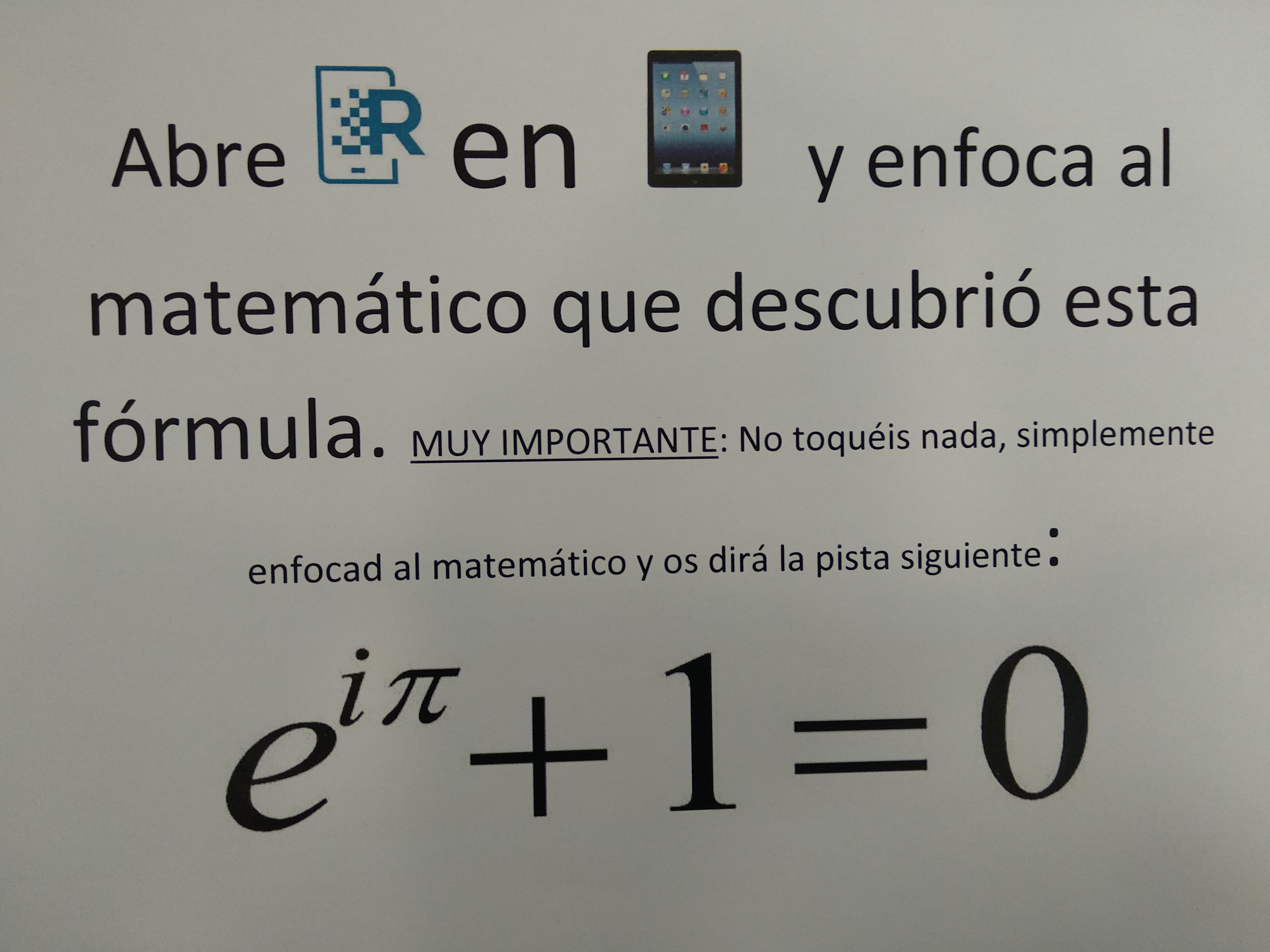 Y para darle un toque más impresionante, añadí la Realidad Aumentada de forma que cuando enfocaban a un matemático importante (Gauss, Euler, Einstein), aparecía un vídeo que les decía si iban bien o no, y la siguiente pista, a la vez que contaba algo del matemático.