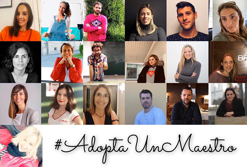 Nace la iniciativa #AdoptaUnMaestro propuesta por la maestra de Educación Primaria Irene Alegría y la directora y maestra de Educación Infantil y Primaria Loida González Montenegro, que empezó con un grupo de 19 docentes de todas las etapas educativas a través de un vídeo para acompañar a las familias y a los alumnos diciéndoles: “no os preocupéis, seguimos trabajando con ilusión y cariño para vosotros” y acabó siendo una campaña de referencia educativa nacional, donde ya se han sumado más de 150 docentes.