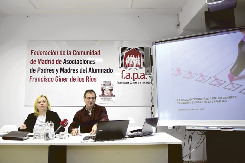La Federación de la Comunidad de Madrid de Asociaciones de Padres y Madres del Alumnado (FAPA) Francisco Giner de los Ríos realizó un estudio, financiado por el Ayuntamiento de Madrid, sobre la calidad democrática en los centros educativos vista por las familias. “Este estudio deja clara la situación de carencia democrática en la que se encuentran los centros de la Comunidad de Madrid”, ha afirmado el presidente de la FAPA Francisco Giner de los Ríos, Camilo Jené.