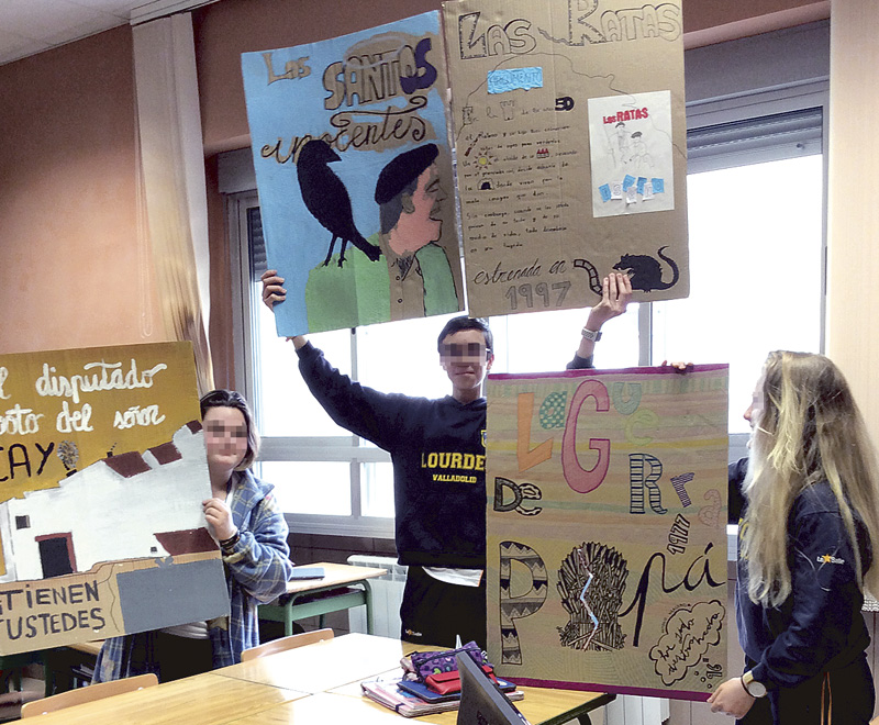Esta actividad se lleva a cabo principalmente en las clases de Lengua y Educación plástica y los grandes libros que de ella se deriven formarán parte de una exposición en la entrada y recibidores del Colegio titulada: Año Delibes, el camino de sus libros. «Con los de 1º de Bachillerato hemos vuelto a hacer, como todos los años, la Ruta del Hereje«, añade el director con respecto a la yincana por los lugares donde el escritor narra la historia de Cipriano Salcedo.