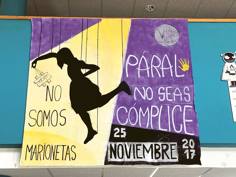 En el día de Santo Tomás de Aquino –día de actividades y de convivencia en el centro–, se preparó un gran mural con fotografías de los ojos de alumnos, de profesores y de personal no docente, acompañados de textos que hacían referencia a los ojos y a lo importante que es mirar al frente y no mirar hacia otro lado ante la violencia machista.