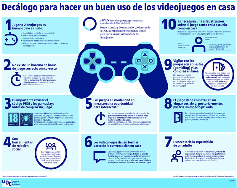 Para que todos disfruten de la experiencia, es importante buscar intereses en común que permitan a padres e hijos (o incluso abuelos, si están en casa) conectar y comunicarse mientras pasan un buen rato. Como recuerda el profesor de la UOC, precisamente jugar es una actividad transversal, que trasciende edades y géneros, por lo que suele resultar sencillo encontrar un punto en común entre padres e hijos. «Suelen tener éxito juegos que sean accesibles para cualquier tipo de jugador, que se entiendan fácilmente y que permitan ponerse a jugar sin demasiadas explicaciones», dice, y añade que los videojuegos relacionados con el deporte y los basados en el estilo del juego de mesa llevado al medio digital son opciones interesantes, aunque los de mayor éxito habitualmente son los juegos musicales que incluyen actividades como cantar o bailar.