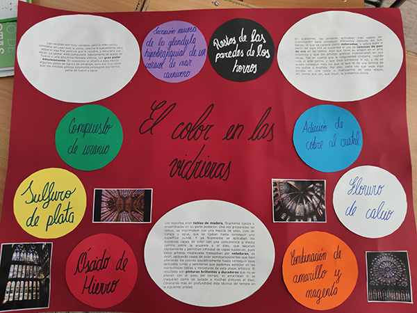 En el módulo de Comunicación y Sociedad, que abarca Lengua, Historia e Inglés, se llevan a cabo diferentes actividades de conocimiento de la Catedral de Burgos pero también de otras catedrales europeas. Se realizaron lapbooks, podcasts en inglés, relatos cortos sobre la Edad Media, etc. Una forma diferente de sumergirse en el mundo del gótico. Por su parte, en el módulo de Ciencias Aplicadas, que abarca Matemáticas y Ciencias Naturales, trataron temas de corte más científico con las vidrieras como elemento central: proporciones de colores, medición de áreas y mezclas de metales y minerales que se utilizaban para la creación de los colores del vidrio.