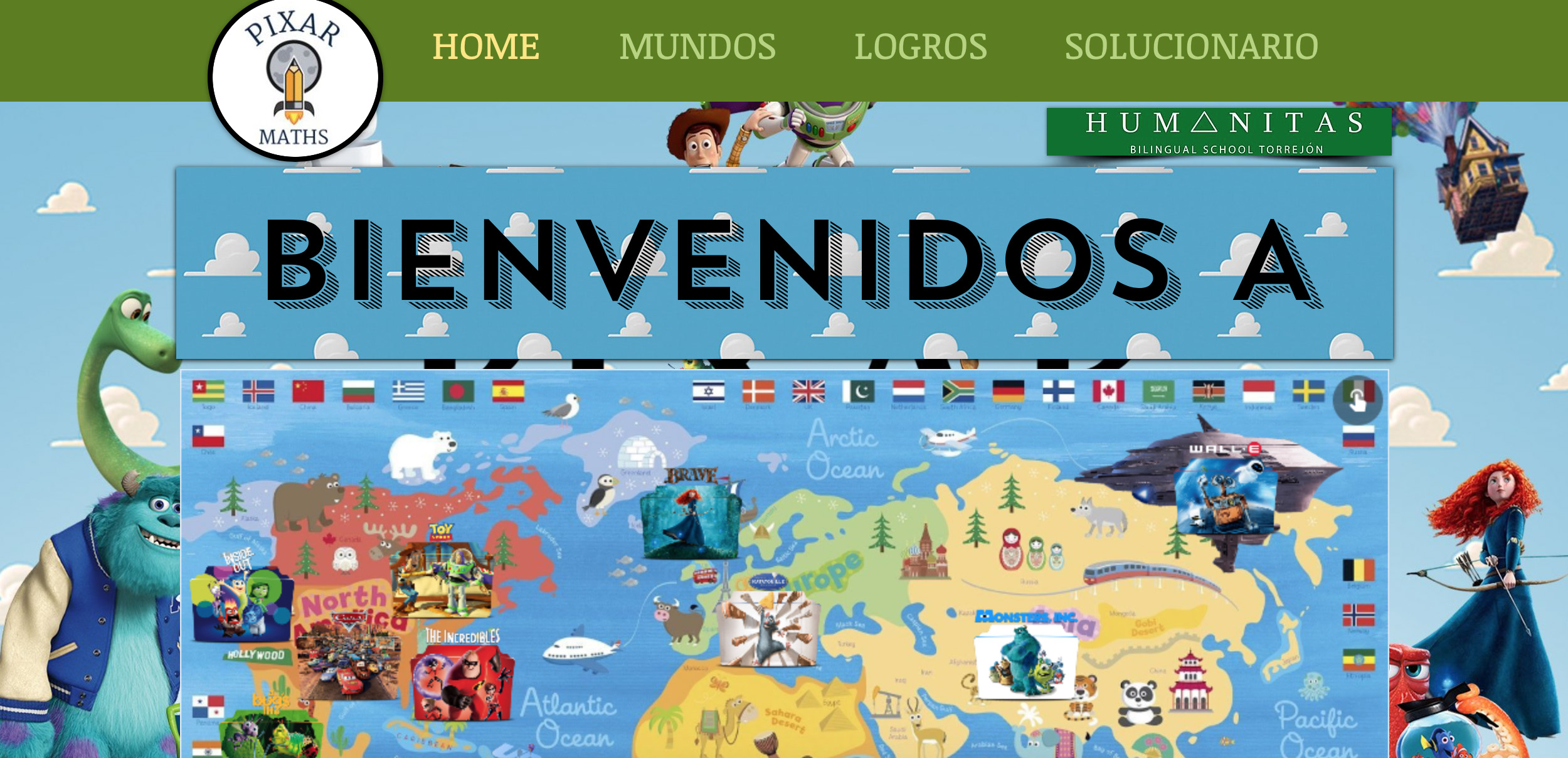 Pixar Maths es una plataforma diseñada por los cinco docentes que imparten clase en 4º curso de Educación Primaria (Elena Vela, Esperanza Poyato, José Carlos Herrera, Sonia Sanz y Carlos Negrín) ambientada en películas de los estudios Disney Pixar. Está estructurada en doce mundos que corresponden a cada una de las doce primeras películas de esta factoría. Cada uno de ellos, a su vez, está dividido en varios niveles en los que se trabajan las cuatro destrezas matemáticas más importantes en estas edades: cálculo mental, operaciones, lógica y resolución de problemas.
