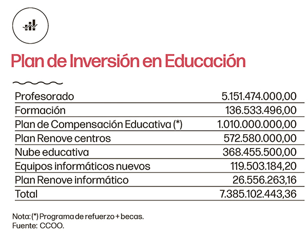 Teniendo en cuenta la ratio propuesta por el Ministerio y los salarios que cobra el personal docente, así como las cotizaciones sociales, habría que invertir más de cinco millones de euros para la contratación de 165.191 docentes.