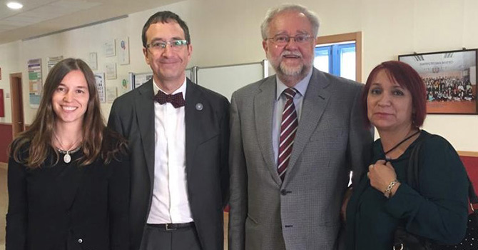De izquierda a derecha: Ana Concha, Horacio Silvestre (director del IES "San Mateo"), el académico de la RAE, Ignacio Bosque y la profesora Yolanda Mancebo.